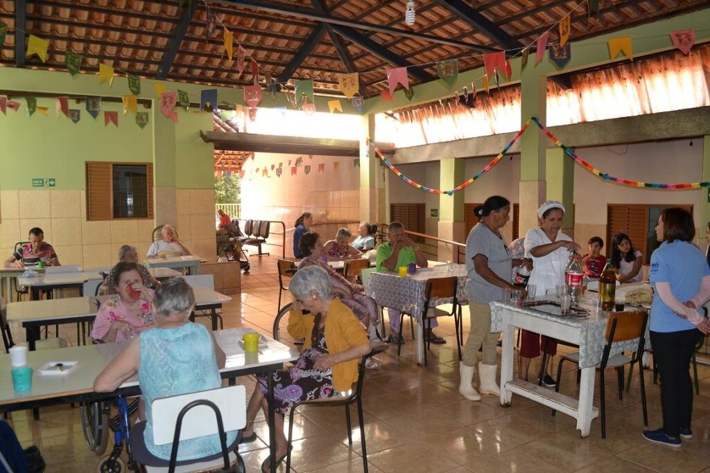 Os colaboradores tiraram a tarde para uma boa conversa, ouvindo histórias e promovendo brincadeiras. Os vovôs e vovós que não puderam se locomover até o pátio para participar do lanche, foram visitados em seus quartos por parte da Comissão de Humanização.