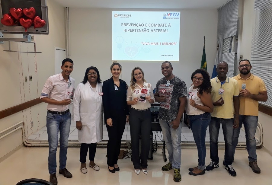 No Dia Nacional de Prevenção e Combate à Hipertensão Arterial (26/04), colaboradores do Hospital Estadual Getúlio Vargas (HEGV), no Rio de Janeiro, participaram de uma palestra no auditório da unidade, com distribuição de material informativo. O evento foi organizado pelo Serviço Especializado em Engenharia de Segurança e em Medicina do Trabalho (SESMT) com o objetivo de esclarecer dúvidas sobre a pressão alta.