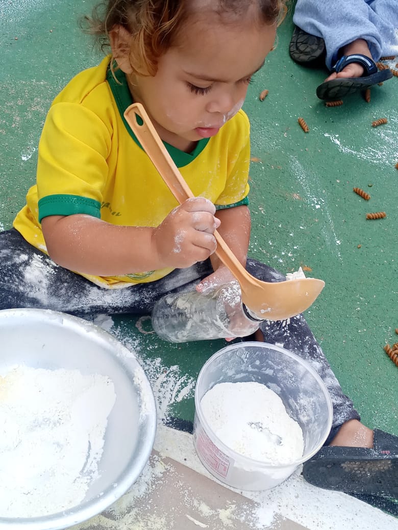 Experiência com farinha de trigo, fubá, macarrão cru
