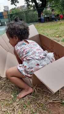 Explorando a área externa com caixas de papelão