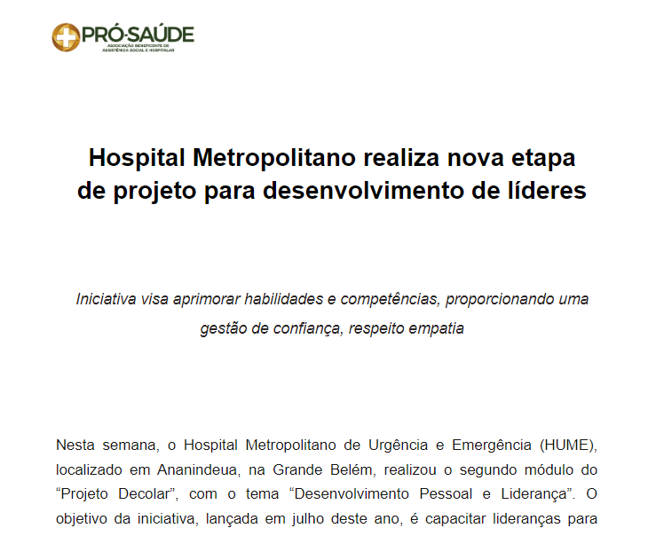 Blog Cabresto – Hospital Metropolitano realiza nova etapa de projeto para desenvolvimento de líderes
