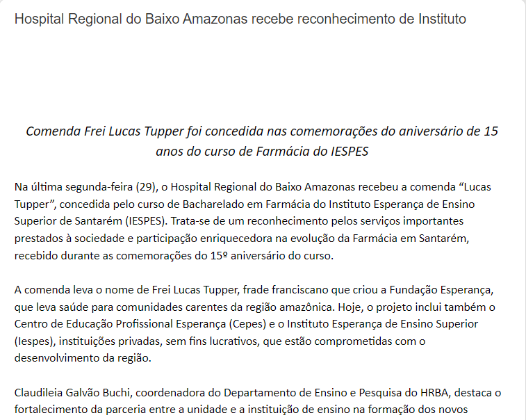 Blog Cabresto – Hospital Regional do Baixo Amazonas recebe reconhecimento de Instituto
