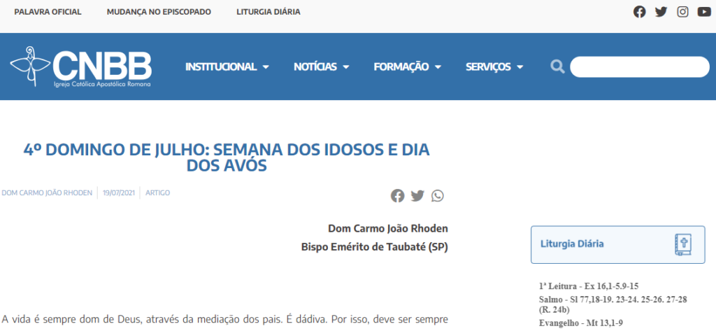 CNBB – 4ª Domingo de Julho: Semana dos idosos e Dia dos Avós
