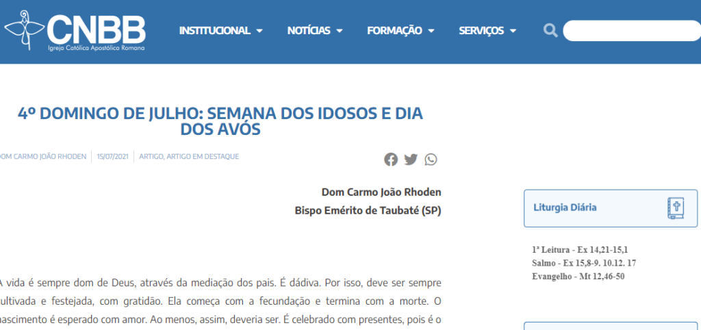 CNBB – 4ª Domingo de julho, Semana dos Idosos e Dia dos Avós