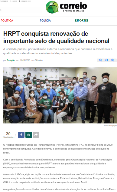 Correio de Carajás – Hospital Regional da Transamazônica renova certificação ONA 3 – Acreditado com Excelência