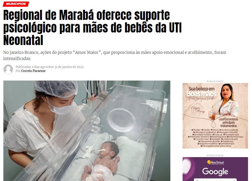 Correio Paraense – Regional de Marabá oferece suporte psicológico para mães de bebês da UTI Neonatal
