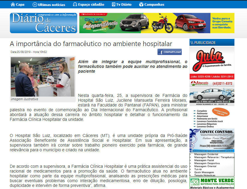 Diário de Cáceres – Profissional do Hospital São Luiz explica a importância do farmacêutico no ambiente hospitalar