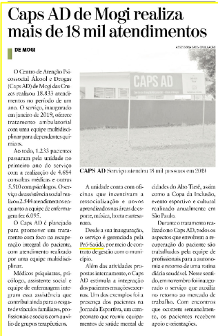 Diário de Suzano – Caps AD de Mogi realizou mais de 18 mil atendimentos em 2019