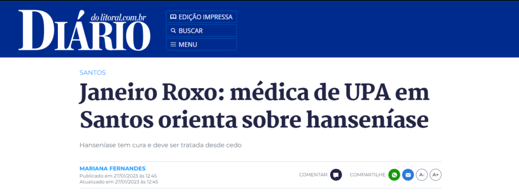 Diário do Litoral – Janeiro Roxo: médica de UPA em Santos orienta sobre hanseníase