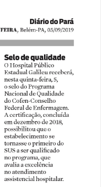 Diário do Pará – Conselho Federal de Enfermagem contemplará Hospital Galileu com Selo de Qualidade