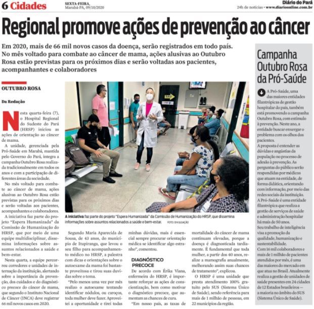Diário do Pará – Hospital Regional do Sudeste do Pará promove ações alusivas ao Outubro Rosa