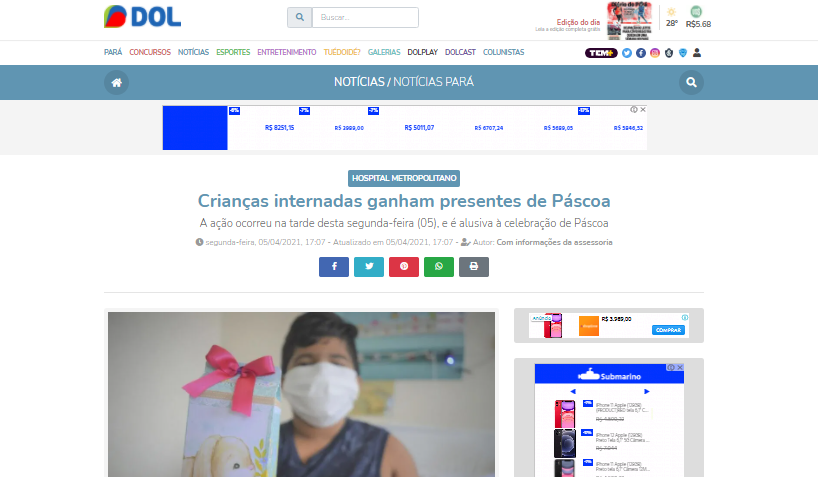 Diário do Pará Online – Crianças internadas no Hospital Metropolitano ganham presente de Páscoa