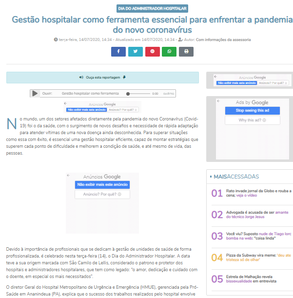 Diário do Pará Online – Gestão hospitalar foi ferramenta essencial para o combate ao coronavírus no Hospital Metropolitano