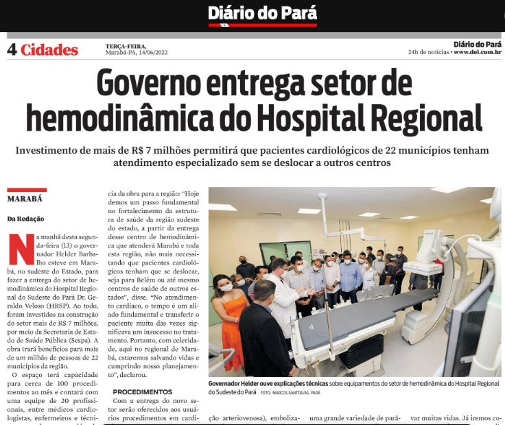 Diário do Pará Online – Governo entrega setor de hemodinâmica do Hospital Regional