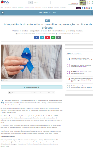 Diário do Pará Online – Hospital Galileu reforça a importância do autocuidado masculino na prevenção do câncer de próstata