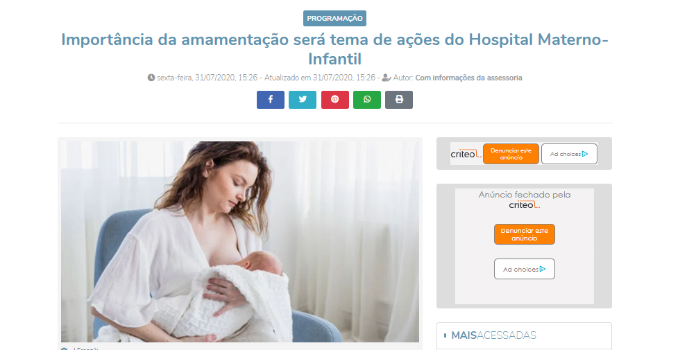 Diário do Pará Online – Hospital Materno-Infantil terá programação especial para tratar da importância da amamentação na Semana Mundial do Aleitamento Materno