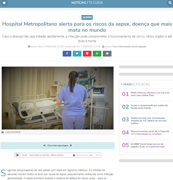 Diário do Pará Online – Hospital Metropolitano alerta para os riscos da sepse, doença que mais mata no mundo