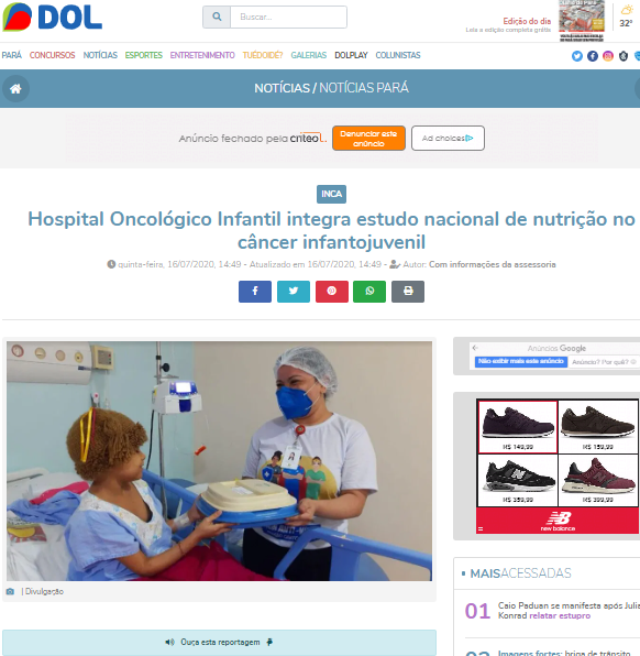 Diário do Pará Online – Hospital Oncológico Infantil participa de estudo nacional de nutrição no câncer infantojuvenil