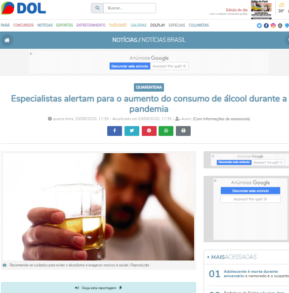 Diário do Pará Online – Hospital Regional do Baixo Amazonas alerta para os altos índices de consumo de bebida alcoólica durante a pandemia