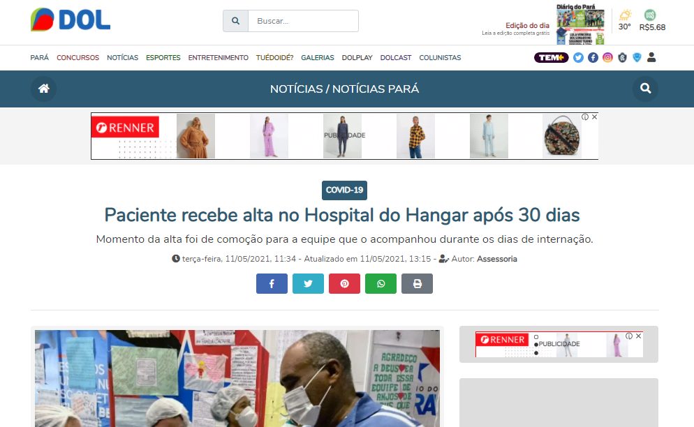 Diário do Pará Online – Paciente recebe alta no Hospital de Campanha do Hangar após 30 dias