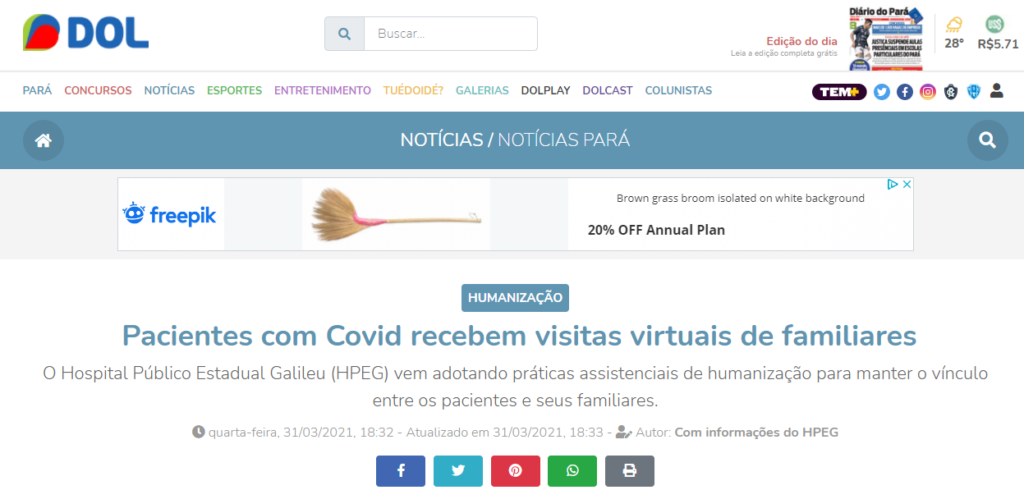 Diário do Pará Online – Pacientes internados com Covid-19 no Hospital Galileu recebem visitas virtuais de familiares
