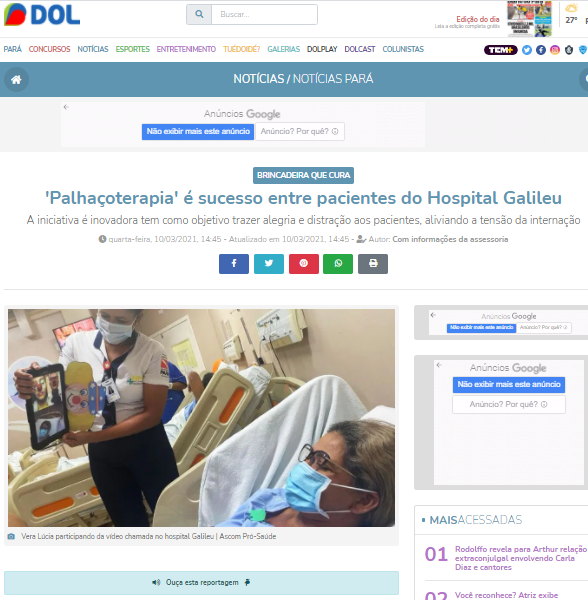 Diário do Pará Online – “Palhaçoterapia” alivia tensão de pacientes no Hospital Galileu