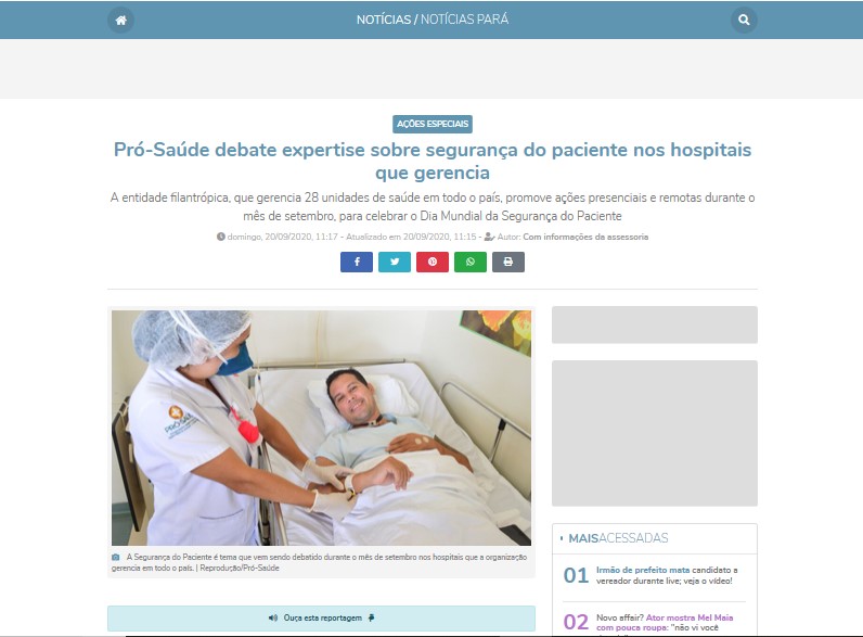 Diário do Pará Online – Pró-Saúde debate expertise sobre segurança do paciente nos hospitais gerenciados