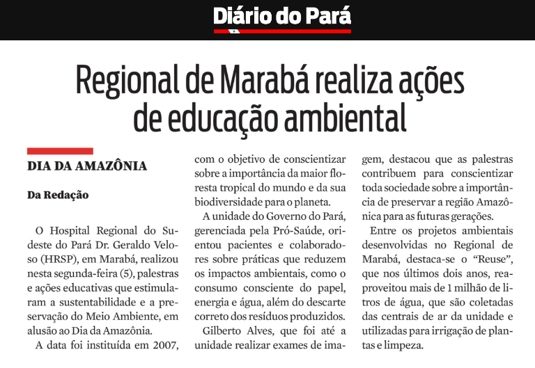 Diário do Pará Online – Regional de Marabá realiza ações de educação ambiental