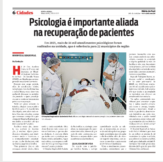 Diário do Pará – Psicologia é importante aliada na recuperação de pacientes