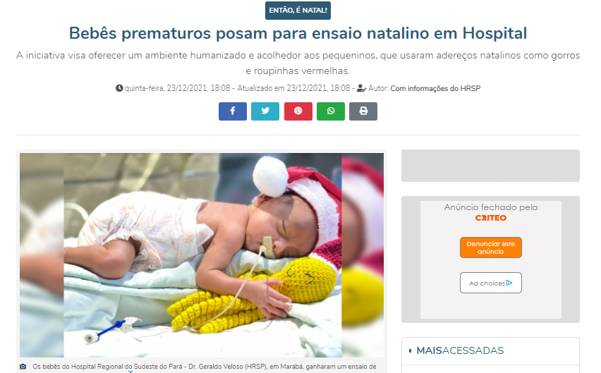 Diário Online – Bebês prematuros posam para ensaio natalino em Hospital