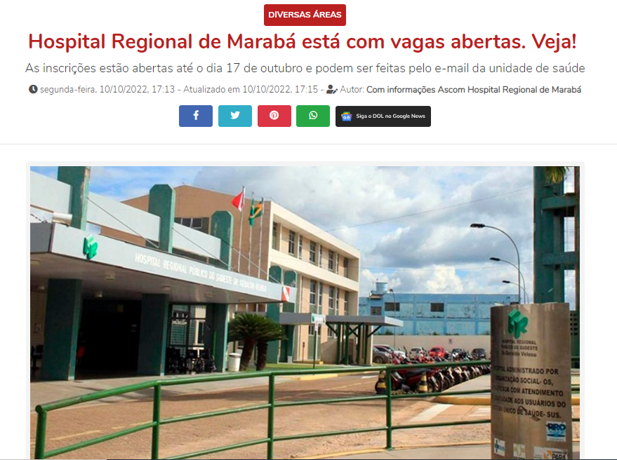 DOL – Hospital Regional de Marabá está com vagas abertas. Veja!