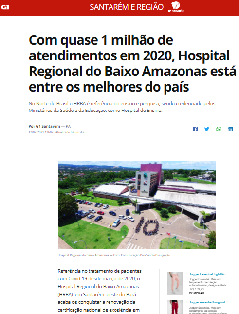 G1 – Com quase 1 milhão de atendimentos em 2020, Hospital Regional do Baixo Amazonas é eleito novamente como um dos melhores hospitais públicos do país