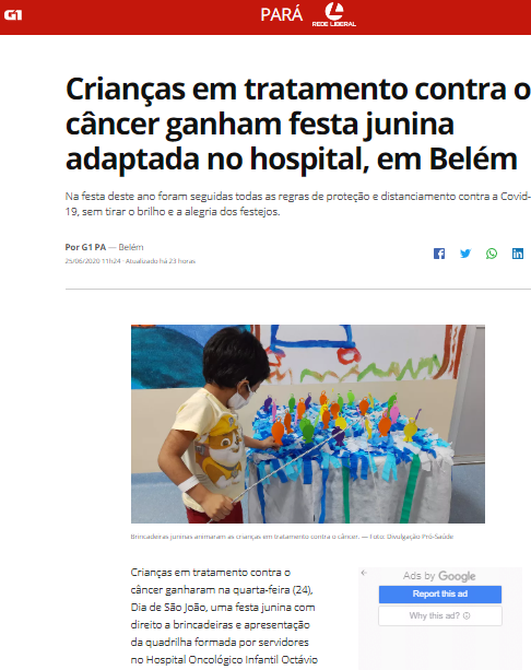 G1 – Crianças em tratamento no Hospital Metropolitano ganham festa junina adaptada