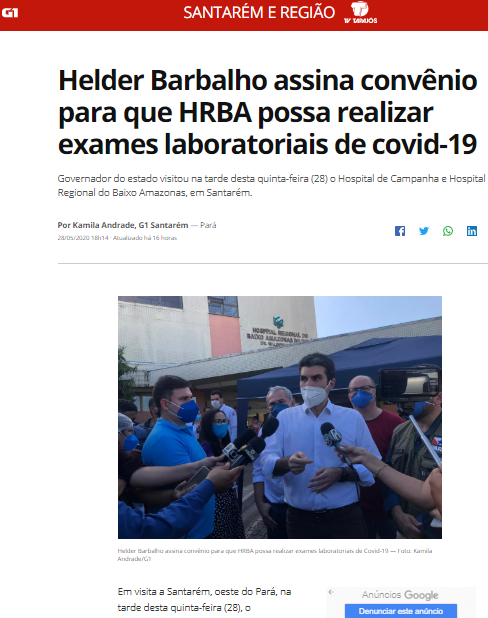 G1 – Governador do Pará assina convênio e Hospital Regional do Baixo Amazonas terá laboratório para realizar exames da Covid-19