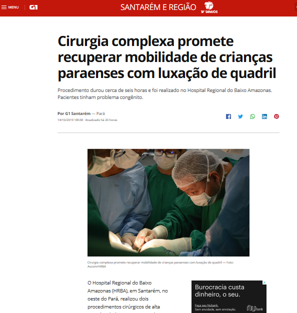 G1 – Hospital Regional do Baixo Amazonas realiza cirurgia que promete recuperar a mobilidade de crianças com luxação no quadril