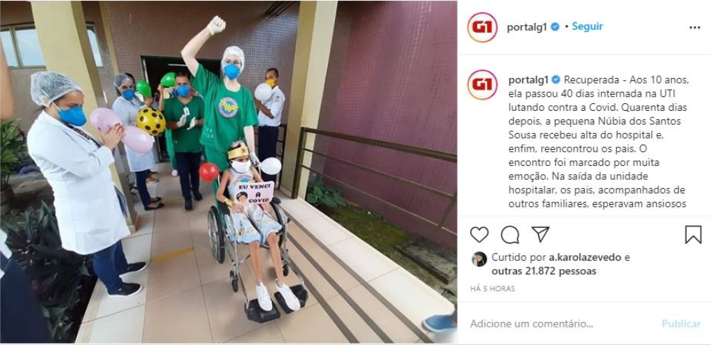 G1 Instagram – Menina de 10 anos vence a covid-19 após 40 dias internada na UTI do Hospital Regional do Baixo Amazonas e reencontra família