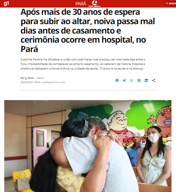 G1 Pará – Após mais de 30 anos de espera para subir ao altar, noiva passa mal dias antes de casamento e cerimônia ocorre em hospital, no Pará