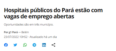 G1 Pará – Hospitais públicos do Pará estão com vagas de emprego abertas