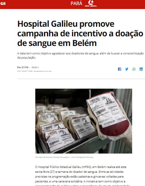 G1 Pará – Hospital Galileu promove campanha de incentivo a doação de sangue em Belém