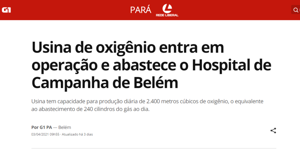 G1 Pará – Usina de oxigênio entra em operação e abastece o Hospital de Campanha do Hangar