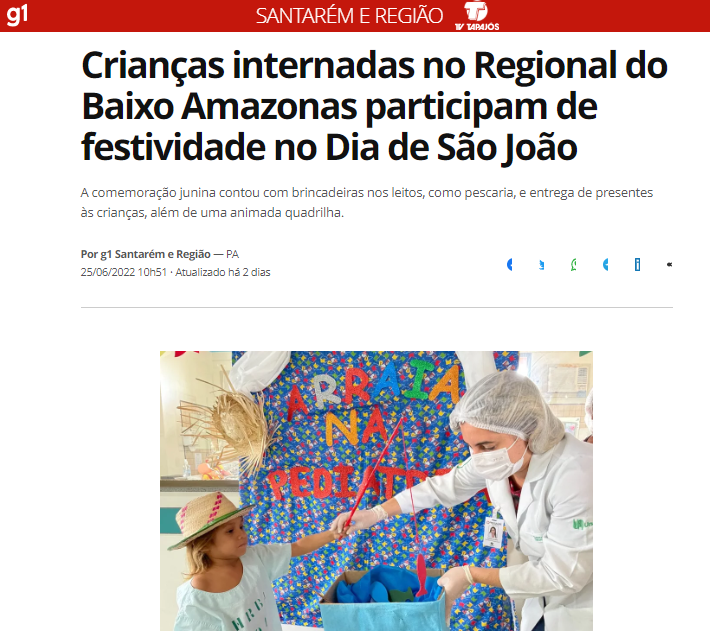 G1 Santarém – Crianças internadas no Regional do Baixo Amazonas participam de festividade no Dia de São João