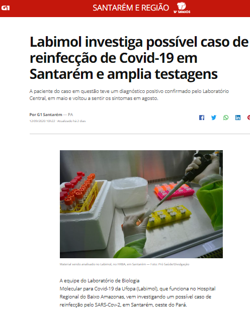 G1 Santarém e Região – Laboratório do Hospital Regional do Baixo Amazonas amplia testagens de covid-19 e analisa possível caso de reinfecção em Santarém