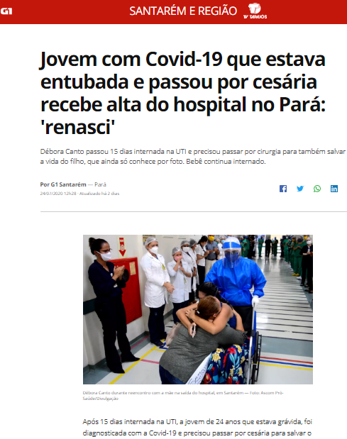 G1 Santarém e Região – Paciente grave da Covid-19, que fez parto cesárea enquanto estava intubada, recebe alta no Hospital Regional do Baixo Amazonas