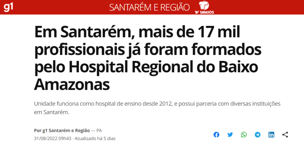 G1 Santarém – Em Santarém, mais de 17 mil profissionais já foram formados pelo Hospital Regional do Baixo Amazonas