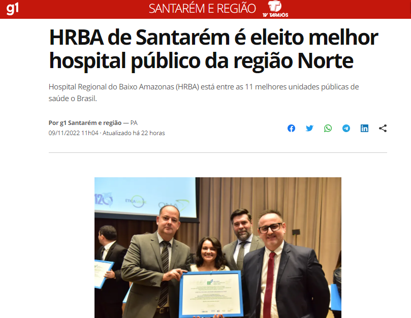 G1 Santarém – HRBA de Santarém é eleito melhor hospital público da região Norte