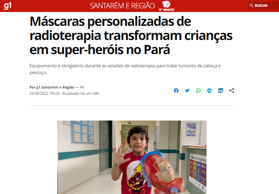 G1 Santarém – Máscaras personalizadas de radioterapia transformam crianças em super-heróis no Pará