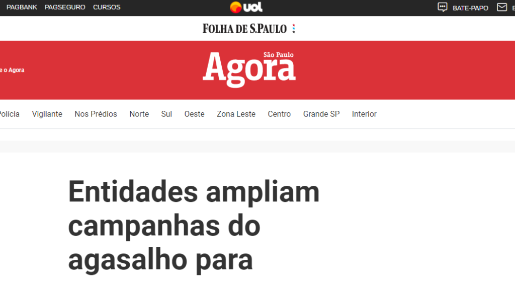 Jornal Agora/Folha de S.Paulo – Entidades ampliam campanhas do agasalho para alimentos e itens de higiene em São Paulo