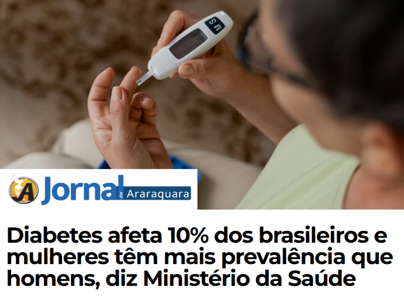 Jornal Araraquara – Diabetes afeta 10% dos brasileiros e mulheres têm mais prevalência que homens, diz Ministério da Saúde