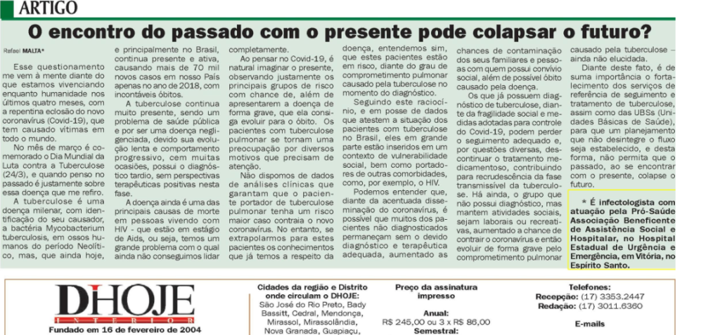 Jornal DHoje Interior – Dia Mundial da Luta Contra a Tuberculose – especialista do Hospital Estadual de Urgência e Emergência analisa situação da doença em meio à pandemia do novo coronavírus