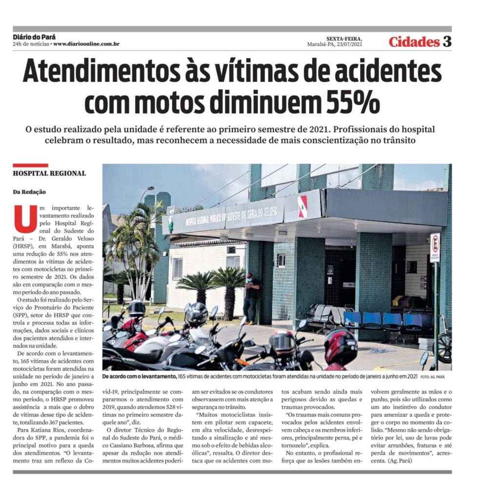 Jornal Diário do Pará – Atendimento às vítimas de acidentes com motos diminuem 55%